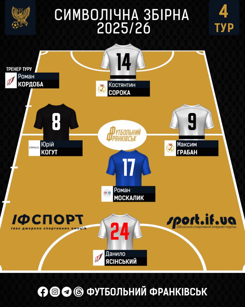 На тренерській позиції сьогодні найкращим стає Роман Кордоба. Так, Роман міг отримати своє місце у збірній як гравець, адже зробив гол+асист у матчі проти “Бест-Обмін КЕПу”, та більш вагомим є його доробок як тренера. Під орудою молодого наставника “ураганівці” здобули дві перемоги в поточному сезоні, поступившись лише фаворитам змагань – “Рибаку-Галії” та “Побудовано-iFranko” і тим самим закрутили інтригу в боротьбі за медалі чемпіонату.