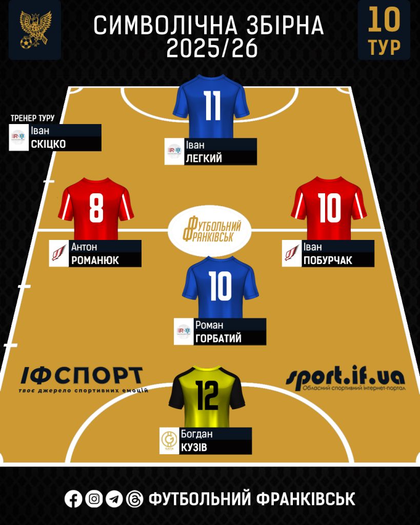 Надійний Кузів, Горбатий-молодший і тренер Скіцко – символічна збірна 10 туру чемпіонату області