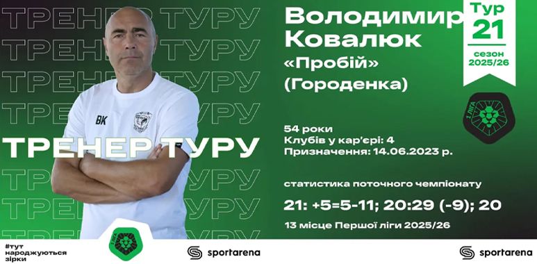 Sport Arena назвала кращого тренера минулого туру VBET Першої ліги.